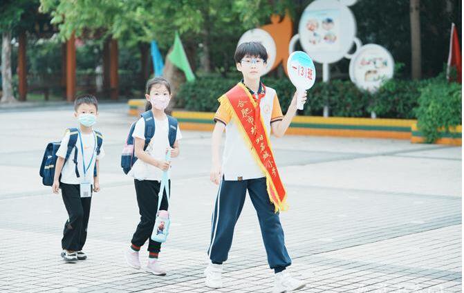 佩帶紅領巾的「學哥學姐」天團早早來到校園擔任歡迎「學弟學妹」形象大使,他們手舉班牌笑臉相迎,熱烈歡迎一年級弟弟妹妹們,1對1相攜遊園、面對面暖心鼓舞、手把手教授經歷、手拉手合影留念,少先隊員們絢爛的笑臉、親熱的言語如初秋清風令人心曠神怡。