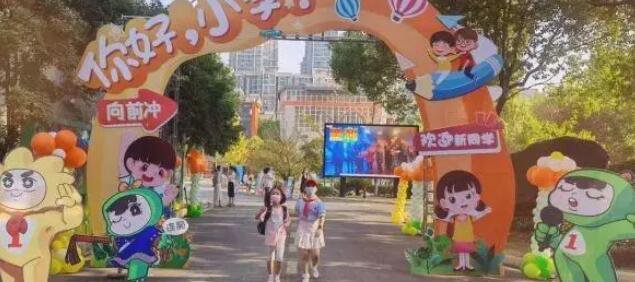 8月28日上午,在光谷一小,學校專門為「萌新」們製作了主題為《你好,小學》的卡通主題拱門,每個重生在「向前沖」的指示牌下,一一跨過拱門,來到充溢活力的小學學校。學校裏還設置了多個「我們開學啦」「我是小學生啦」打卡點,讓孩子們不斷收獲驚喜。一年級重生在高年級誌願者同學們的帶領下,參觀學校。隨即在各自班主任的安排下,迎來特別的「開學第一課」。
